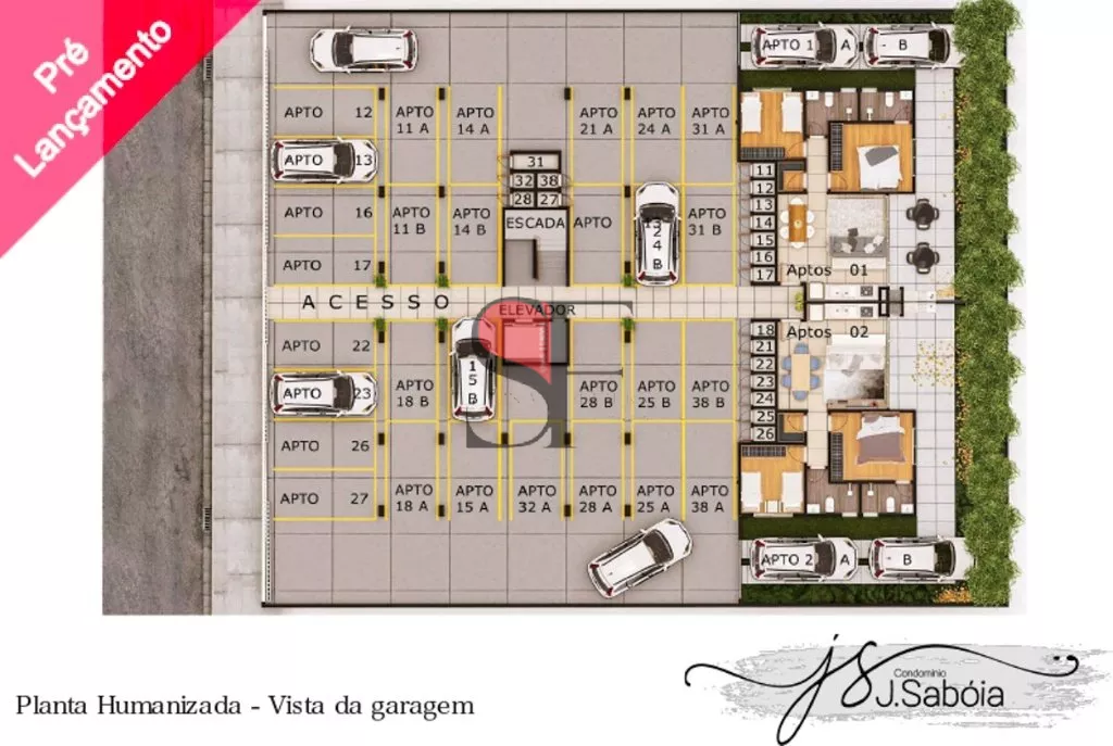 9 apartamentos /studio de 39m² a 41m², com quarto e sala conjugados,varanda gourmet e cozinha integrada, 1 vaga.