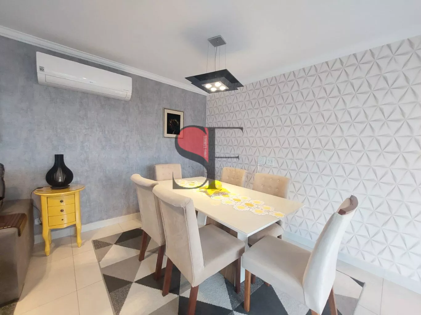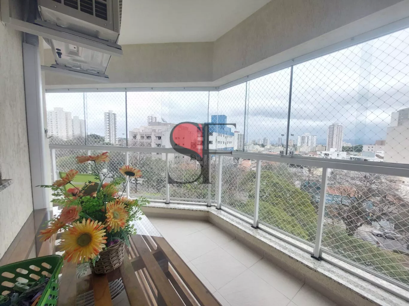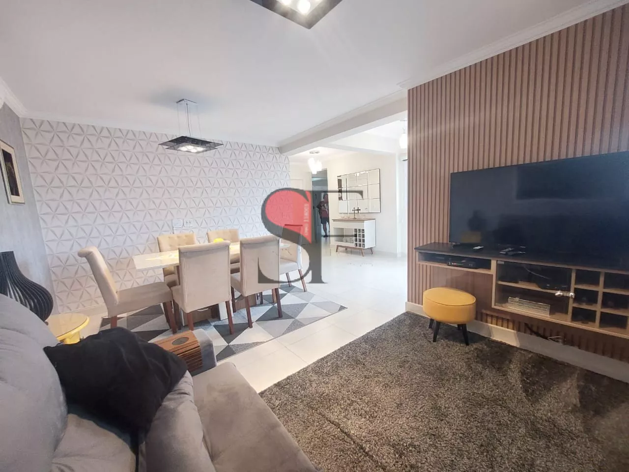 Sala de estar e jantar, com varanda gourmet envidraçada. Lavabo.