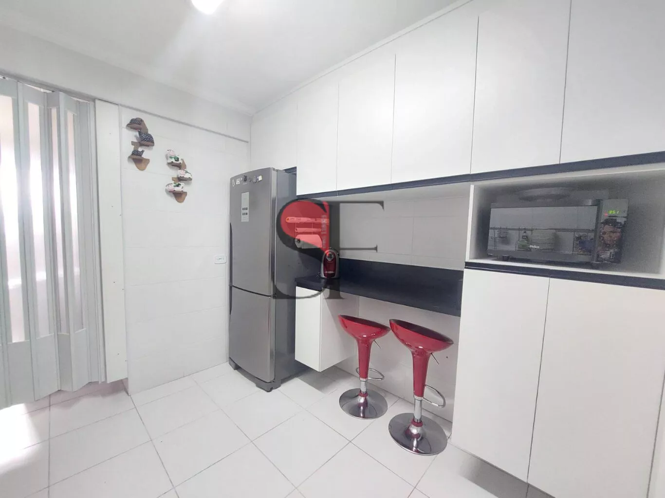 Cozinha com móveis planejados, área de serviço.