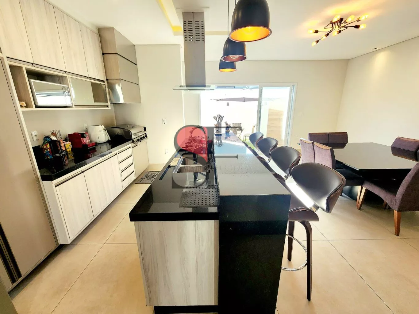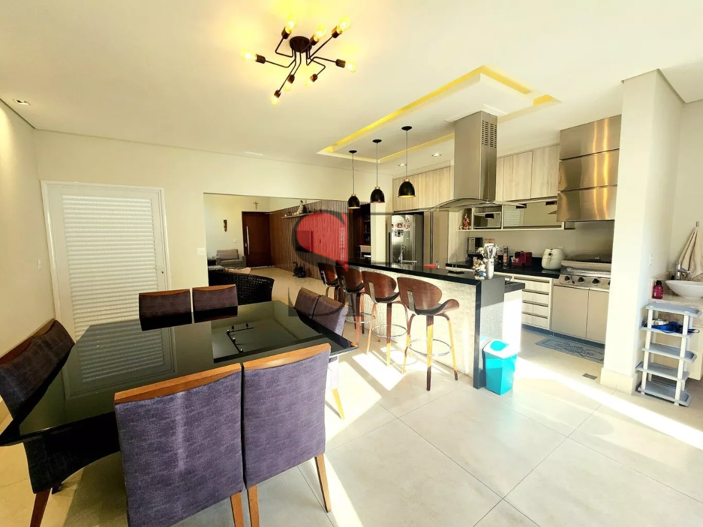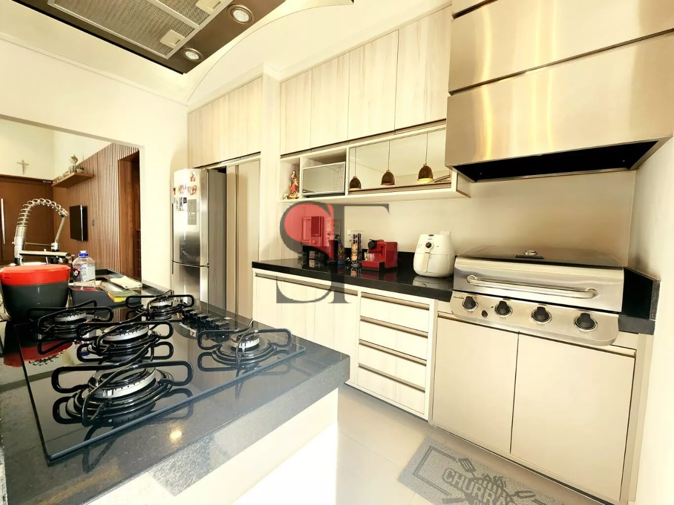- Sala e Cozinha Gourmet: Um ambiente amplo e convidativo, com forno e cooktop embutidos da Brastemp e uma churrasqueira americana Char-Broil, ideal para receber amigos e família.