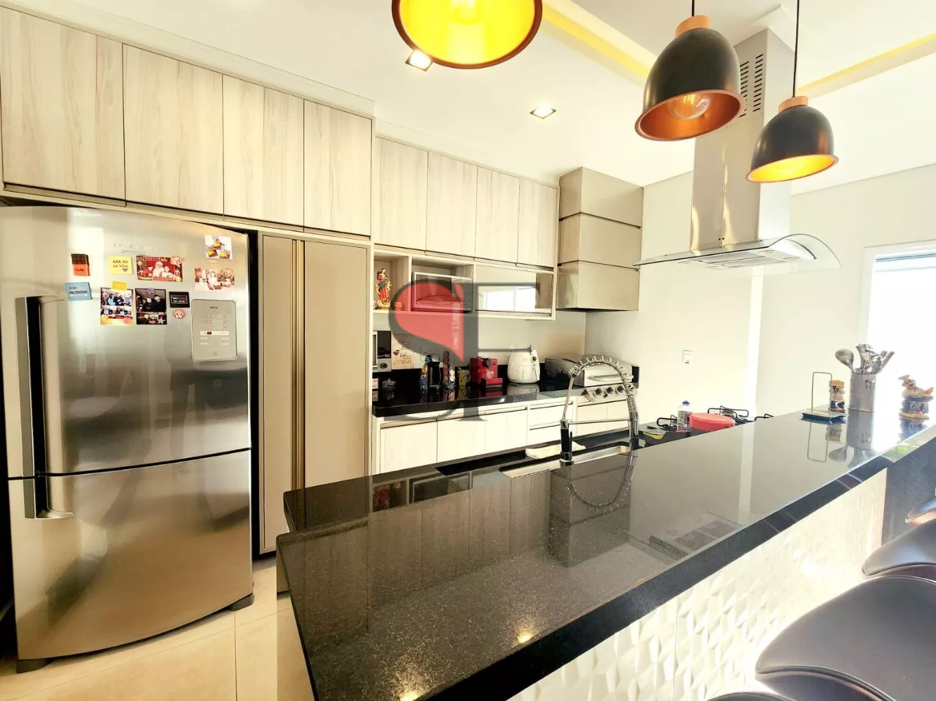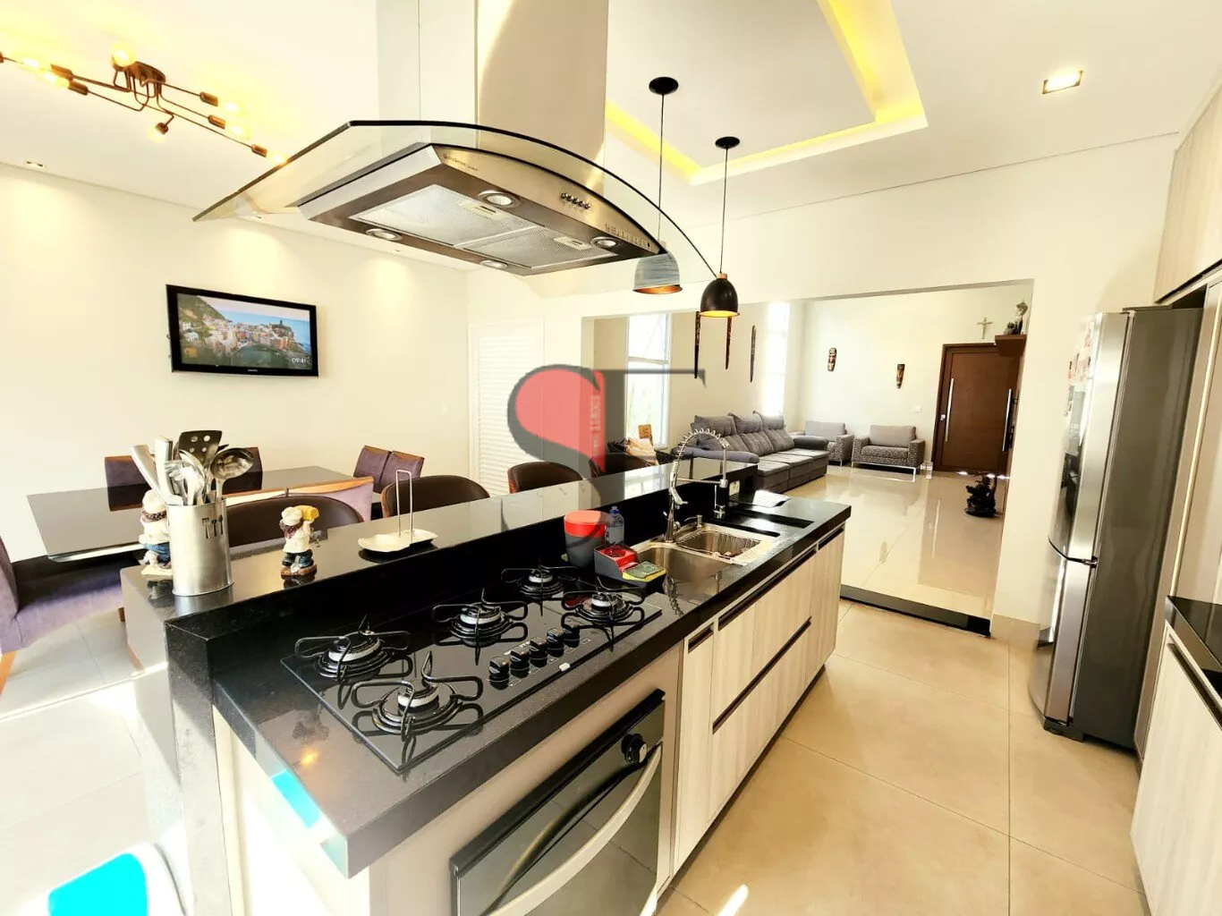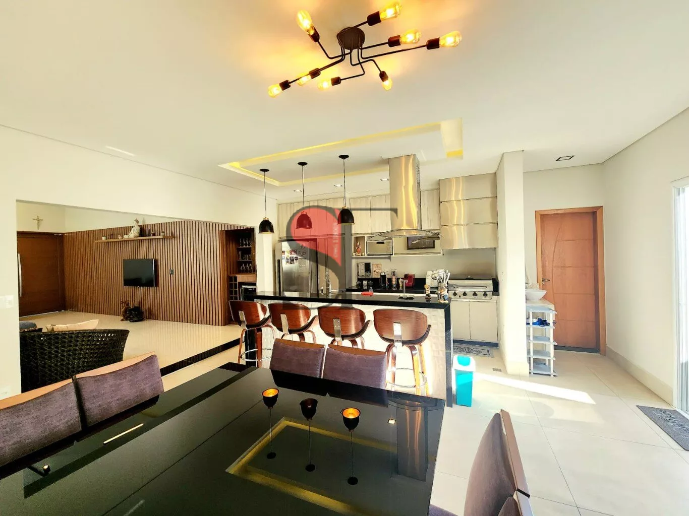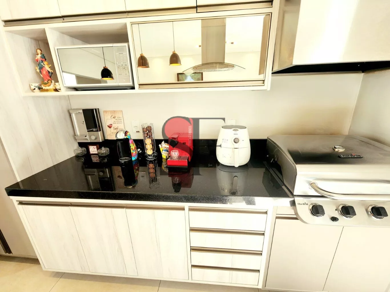 - Sala e Cozinha Gourmet: Um ambiente amplo e convidativo, com forno e cooktop embutidos da Brastemp e uma churrasqueira americana Char-Broil, ideal para receber amigos e família.