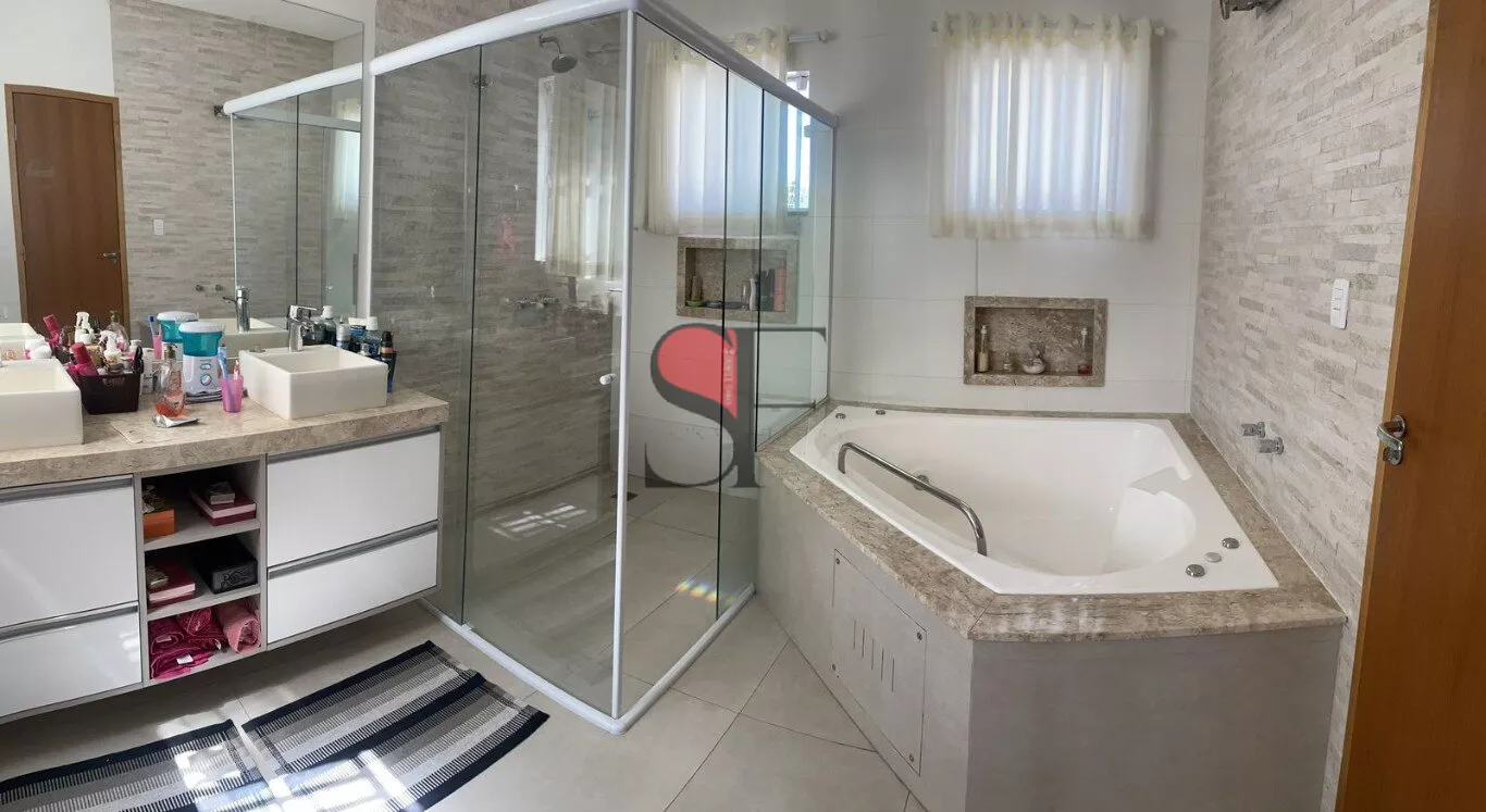 Piso Superior: 4 quartos (todos suíte), sendo 3 com móveis planejados e banheira de hidromassagem, sala de TV com adega.