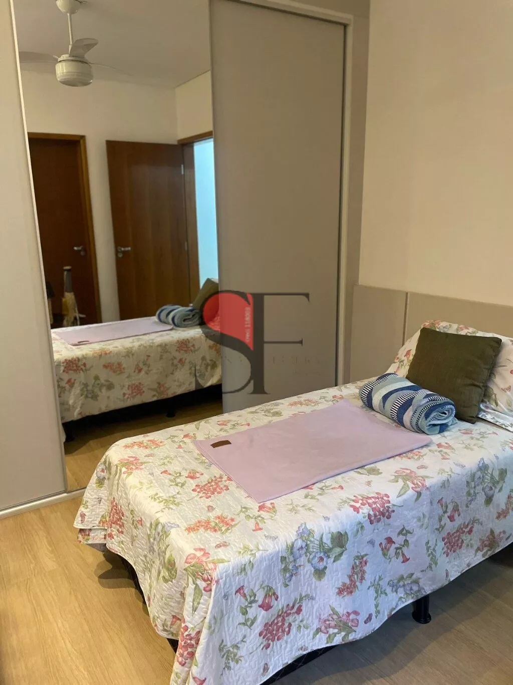 Acabamento em piso laminado nos quartos e salas e porcelanato na cozinha e banheiros, esquadrias em alumínio. Sistema de aquecimento solar