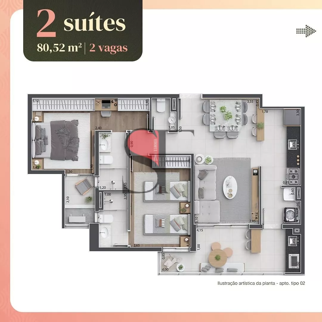 20 aptos. com 80,52 m² | 2 suítes | 2 vagas
